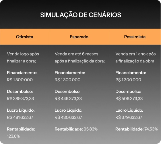 O caso do Fabiano parece extraordinário - e na verdade, é. Mas, no mercado da construção para venda, retornos como esse são comuns. Ele construiu uma casa em 8 meses, vendeu em apenas 4 meses depois de pronta e obteve 141% de rentabilidade. Não acredita? Então segue os números…